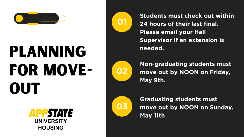 University Housing has finalized its Spring closing plan for the residence halls! Here is a quick layout of important dates and information for the end of the Spring semester.